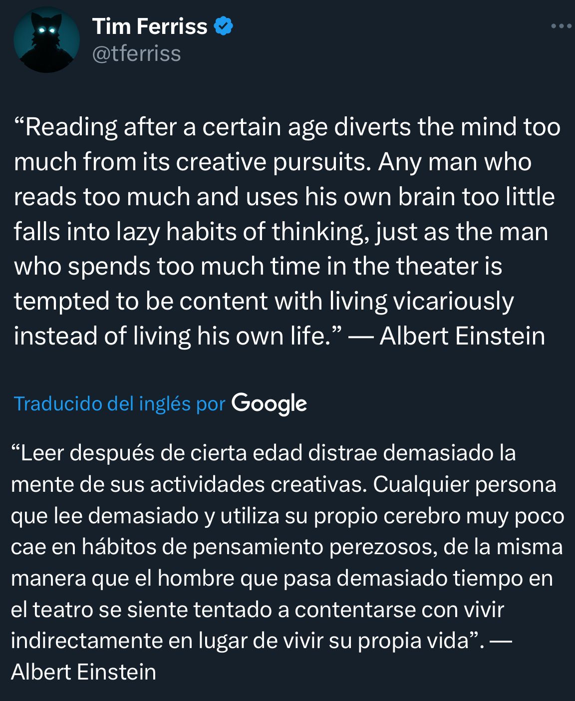 Esta semana Tim Ferris compartió una frase de Einstein que yo no conocía.