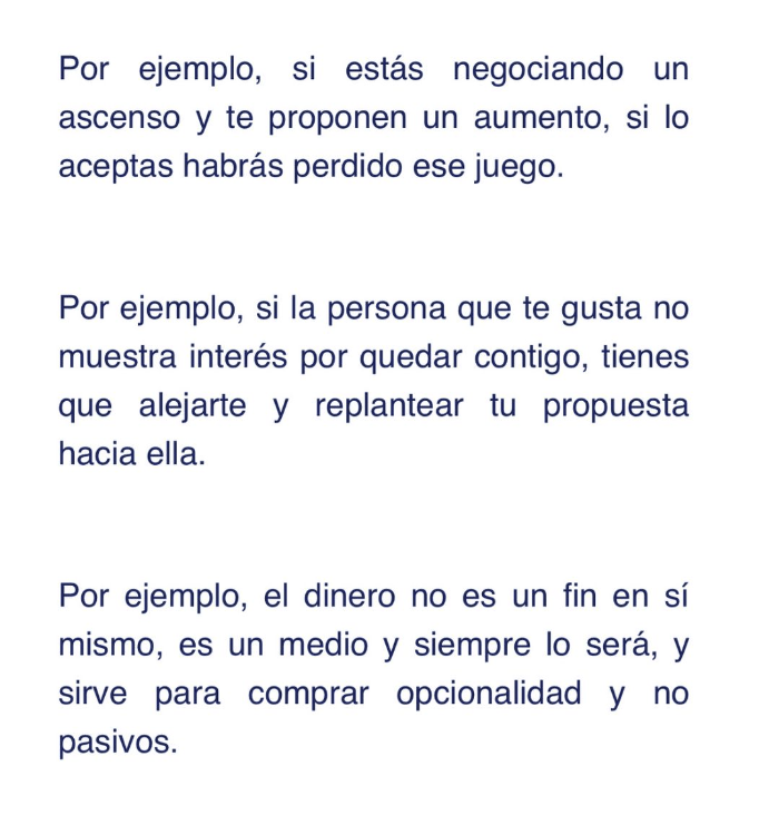 Y por último, el dinero es un medio. Y quien lo ve como un fin es una persona con una mentalidad muy mediocre. Esa gente quiere trabajar para ahorrar dinero, para tener opciones en un futuro.
